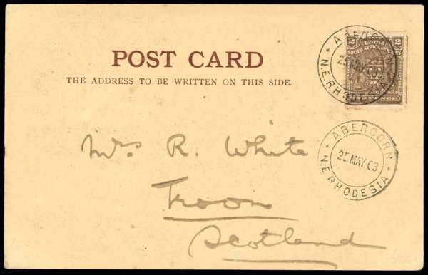 1903 postcard (Tanganyika scenery) to Scotland, 2d Arms with fine strike of Abercorn CDS (Proud D3) for 26 MAY