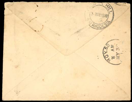 Rhodesia 1910 envelope to Ireland with Kasama squared circle