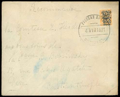 Russia: Wrangel Refugee Post 1921 (4 Avr) registered cover