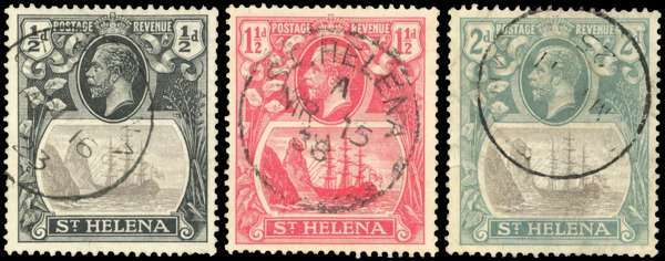 St Helena SG 97b, 99b, 100b 1922 ½d, 1½d and 2d torn flags used