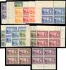 1938-44 set of fourteen in unmounted o.g. blocks of four, the 10/- an imprint block. The 3d blue with some slightly blunt perfs at right, otherwise fine; not easy in multiples. SG 131-140, £560