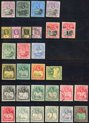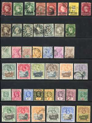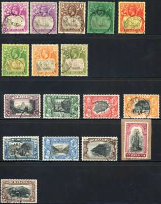 1864-1934 used collection (90) with a small group of earlies, then 1890 set; 1903 set (2s thinned); 1908-11 issues but the 10s with dubious cancel; 1912 set, 4ds and 6ds; 1922 monocolours; 1922-37 MCA set (5s faked cancel), and Script (no 2s) to 7s6d, 10s faked cancel (varieties with ½d mast, 1d mast, 2d mast and rock), and 1934 Centenary set. Generally good condition, but a little mixed in places
