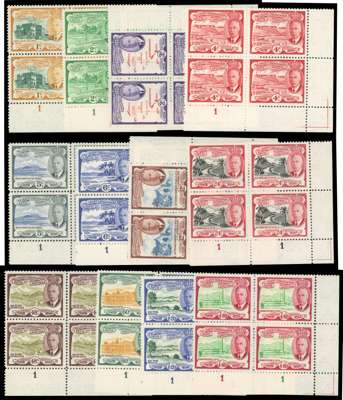 1952 set of twelve in unmounted o.g. Plate blocks of four. SG 94-105, £168