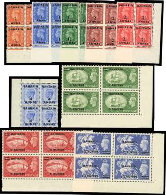 1950-1 set of nine in lower right corner blocks of four, unmounted o.g., fine save for a few minor bends. SG 71-9, £480