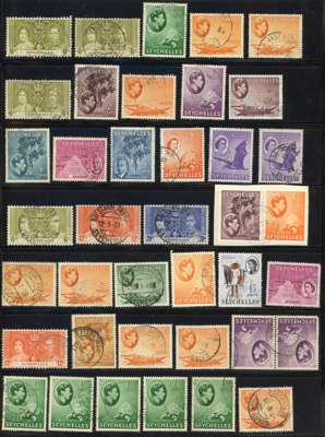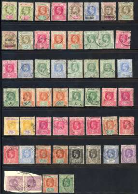 Postmarks. 1890s-1960s collection divided into pre-KG VI (227) and KG VI/QE II (75) with some rare items. Includes Seychelles Code ‘2’ dated 28 JY 10 (presumably an error for 01), when in use at Anse Boileau (Proud D1), and a partial strike of the Anse Boileau CDS itself (Proud D2, dated JU ? 02), both extremely rare; Cascade (Proud D2), a good strike of JY 23 03, also very rare, and a remarkable three examples of Takamaka (Proud D2) dated 14 JA 04, 25 A? 0? and () 06. Good coverage of the other early offices with many lovely strikes, a fine collection indeed