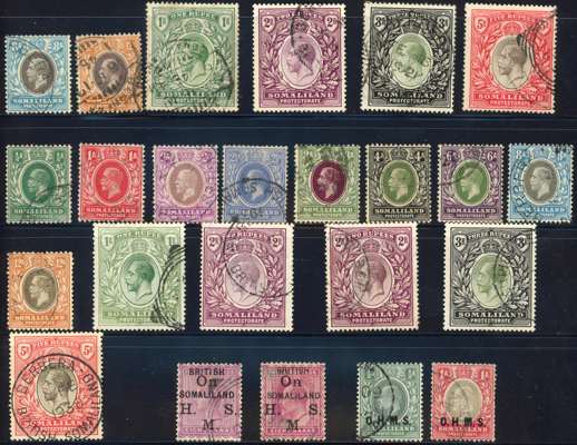 1903-21 used collection (85) with regular issues complete for the period, with some extras; 1913 ½a inverted watermark and four Officials, including 1903 8a with indeterminate squared circle cancel. Some postmark issues, with the 1904 2r having a faked cancel and the 3r and 5r (each on piece) postmarked in 1945; 1919 2r, 1921 2r (2) and 5r with faked cancels, otherwise a useful collection