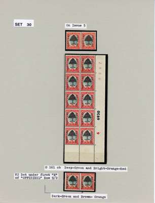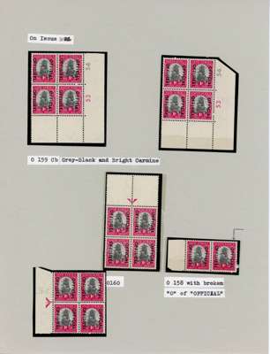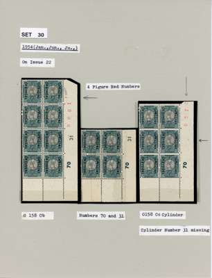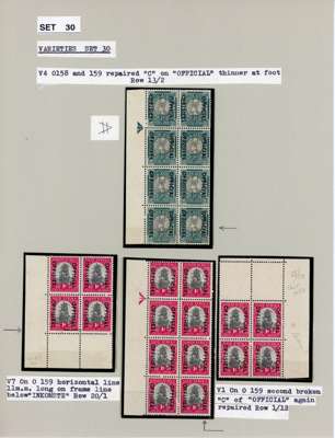 Officials. 1954 mint collection of the final overprinting (Handbook Set 30), large part or unmounted o.g. (83 pairs, almost all in blocks. Cylinder blocks complete to 1/- and 5/- (2/6d does not exist with Cyl. number from Issue 4; 5/- slightly stained on reverse) including ½d block with Cyl. ‘31’ unprinted; arrow blocks; positional blocks with constant overprint varieties. SG O40-50a