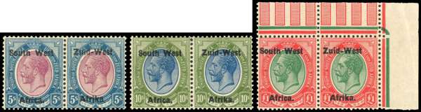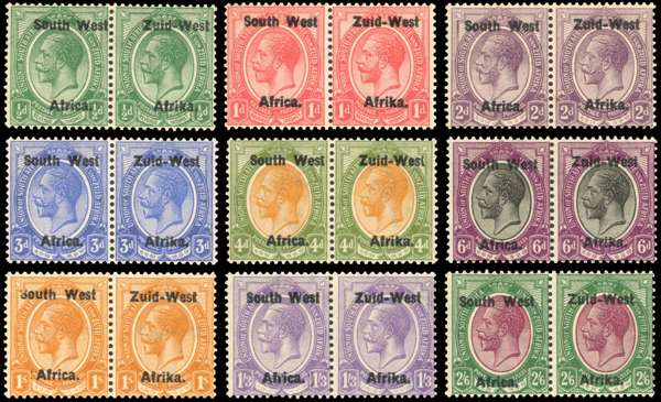 1923 set of 12 horizontal pairs to £1, Setting 1 (14mm between lines), mint o.g. (mostly unmounted), the low values with faintly yellowish gum otherwise fine with the £1 from the upper right corner of the lower pane. A very scarce set, with only 10 sheets printed of the 10s and £1 values. SG 1-12, cat £2500