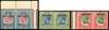 1923 5s, 10s, £1, Setting II (10mm between lines of opt), set of 3 horizontal pairs, the 5s from upper right corner of left pane, unmounted mint o.g. (5s hinged in margins), the 5s faintly toned and £1 with minor gum crease still an attractive and very scarce trio. Only 10 sheets printed of 10s and £1 values. SG 13/15, cat £1960+