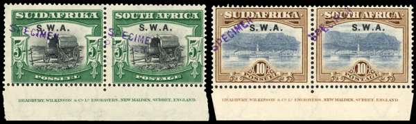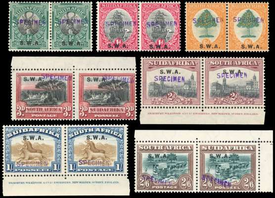 South West Africa SG 58s-67s 1927-30 pictorial set of 9 pairs handstamped Specimen