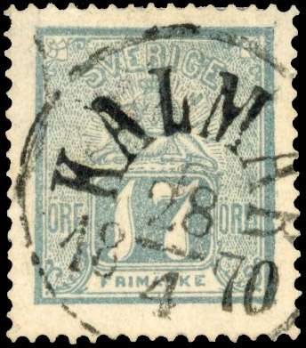 1862-66 17ö slate-grey (bluish grey), neatly tied by superb ‘KALMAR (8/4/1870)' cds, slight corner perf bend. A scarce stamp. SG 14, Facit 17c