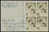 1948 Silver Wedding 10/- block of four on registered cover (with a 1½d block on reverse) to the USA, no registered label, Maseru CDSs of 1 DEC 48 (that on the 10/- with the date rather faint). SG 37, £200 as stamps