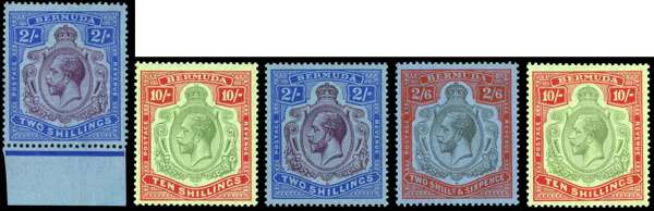 Bermuda SG 88g, 89j, 92 1924-32 Script 2s, 2s6d, 10s mint