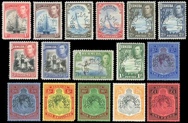 Bermuda SG 110s/121s 1938-53 KGVI set of 16 to £1 perf Specimen