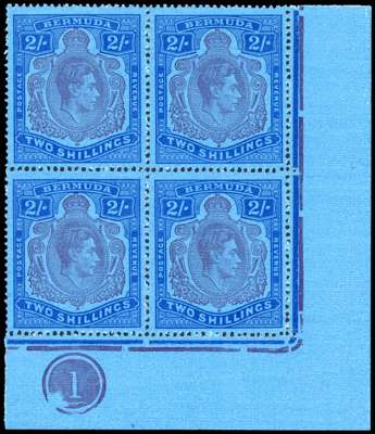 Bermuda SG 116c/ce 1938-53 2s ordinary paper plate block variety Broken lower right scroll unmounted