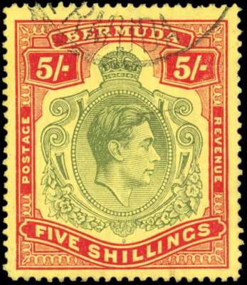 Bermuda 1941 (May) 5s line perf with HPF #22a lower right scroll with broken tail, SG 118bc