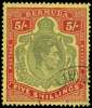 1941 (Nov.) 5/- bronze-green and carmine-red on pale yellow paper, fine used with part 1943 Ireland Island CDS. SG 118c, £150