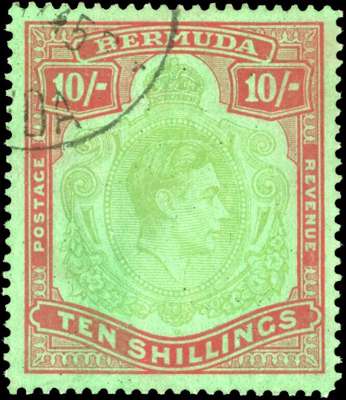 Bermuda 1941 (Sept.) 10s line perf with HPF #60 broken lower right scroll, SG 119be