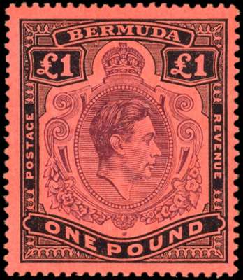 Bermuda SG 120cf 1938-53 £1 variety Gash in chin unmounted