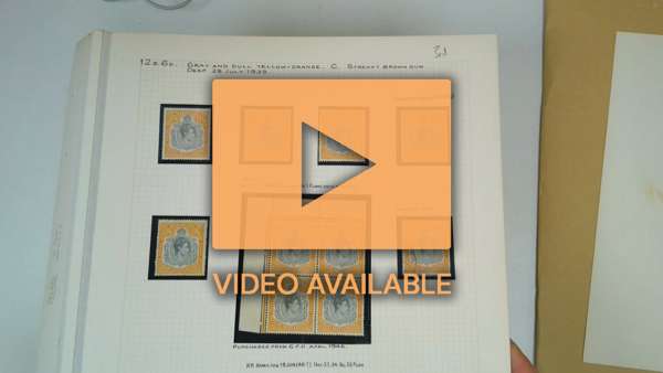 1938-52 12s6d value, Ludington's study collection balance, intact as sold in his 1999 sale. Includes first printing used, third printing nine mint with top left corner block of four (stamps unmounted) and three used, fifth printing mint marginal blocks of four and six with stamps unmounted, four pairs and four used [also fiscally used block, last three rows, and a mint pre-punched but not used block of eight, most unusual], sixth printing two mint blocks, two mint singles and one used, seventh printing (the ‘lemon’) two mint, four used (one with 1968 BPA Certificate); eighth printing two corner blocks and four singles mint; ninth printing Plate block, mint single and two used; tenth printing two mint blocks, pair and used single; 11th printing Plate block and mint single; twelfth printing corner block mint. Used fiscal singles throughout, a fine study