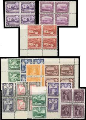 1938-52 set of twelve in unmounted o.g. blocks of four. SG 308b-319, £480