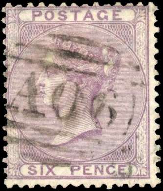 GB used in. 1856 6d lilac, with a fine strike of ‘A06’. Nice quality. SG Z3, £300