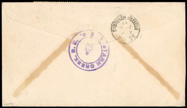 1942 envelope to London bearing 1c pair and 3c, with two strikes of Stann Creek TRD of 6 JUN in violet. Octagonal red censor on front. Minor glue staining affects the envelope