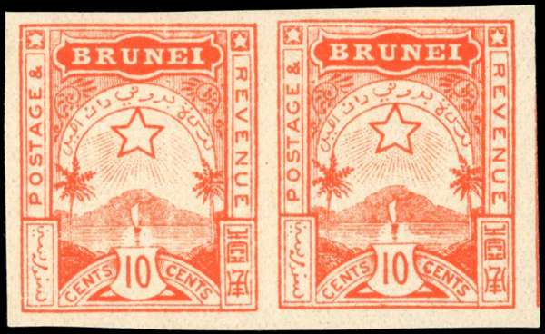 Brunei 1895 10c orange-red, mint unmounted imperforate pair