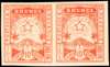 1895 10c orange-red, mint unmounted og imperforate horizontal pair showing part of adjoining stamp at right (positions 17-18). Only one sheet of fifty is known. SG 7a