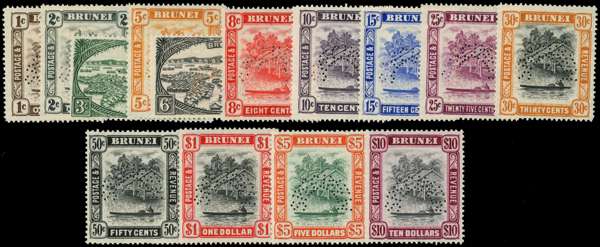 1947-51 set of fourteen perforated SPECIMEN Type D21, large part o.g., fine. SG 79s-92s, £375