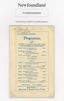 Newfoundland c.1919 Music programmed signed by J. Alcock and A. Brown (pilots)