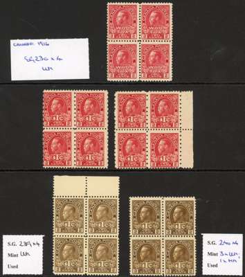 1915-16 War Tax collection on stock pages, commences with 1915 1c and 2c (both shades plus 2c rose-carmine block of 4) then largely complete run of 1916 ‘1Tc’ issues incl 2c+1c imperf x perf 8 coil pair, 2c+1c perf 12x8 blocks of 4 (both shades), 2c+1c perf 12 die II (CPES cert), and 2c+1c brown die I, mint large part o.g. to unmounted o.g., slightly mixed cond but much is fine. SG 228/243, cat £2000+