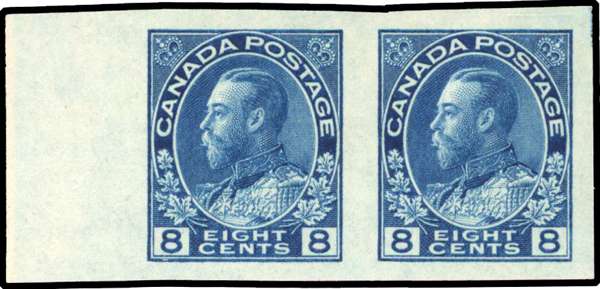 1922-31 'Admiral' 8c blue, imperforate horizontal pair, mint large part o.g. Only 50 pairs existed. SG 252 var, cat £2,500