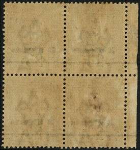 1892 3c on 28c slate with surcharge double, marginal block of four with slightly discoloured o.g., two seemingly unmounted, lightly toned. SG 243a, £720.