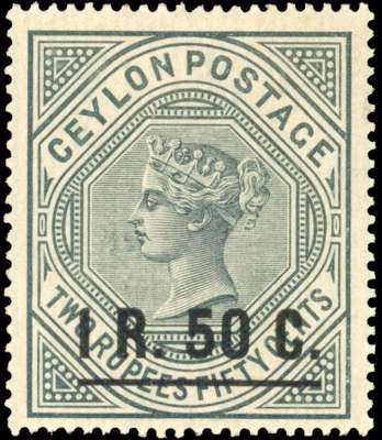 Ceylon 1898-99 1r50 on 2r50 slate with inverted watermark, SG 254w