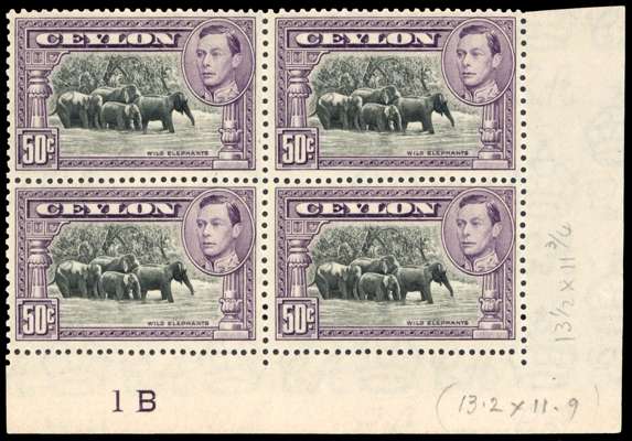 1938 50c perf 13 x 11½ FP 1B block of four, unmounted o.g., with fine naturally-streaky gum. SG 394, £640+