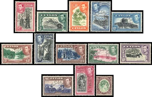 1938-43 set (no 1947 2r) perforated SPECIMEN Type D20 or B9, fine o.g. SG 386s-396s, 397s