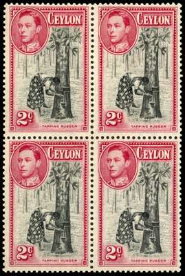 1938 2c perf 13½ x 13 block of four, natural streaky o.g., light central hingemark. SG 386a, £480