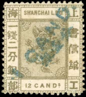1873-75 1ca on 12ca grey-brown, surcharge in blue, mint large part o.g. with above average centring, signed ‘’Pemberton'' on reverse, fine, a difficult stamp. SG 56 cat £1900; Chan LS58 cat $5000