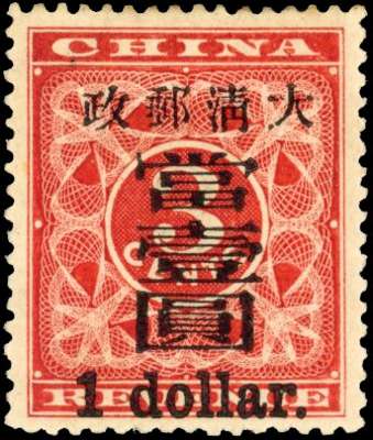 CHINA 1897 Red Revenue $1 on 3c large surcharge mint