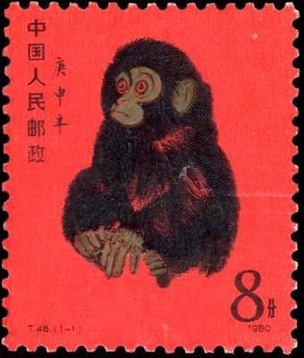1980 Year of the Monkey, 8f vermilion, black & gold, mint unmounted o.g. typical black ink offsets on reverse, fine; an ever-popular and lucky stamp. SG 2968 cat £1500; T46 $1000