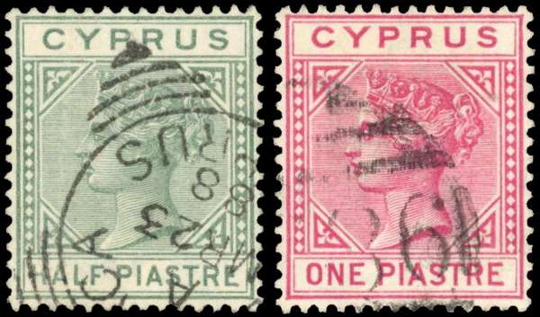 Cyprus SG 16ab, 18a 1882 ½p and 1p detached triangles used