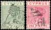 1882 ½pi and 1pi, each with Plate 2 R3/3 RP top left triangle detached, fine used. SG 16ab, 18a, £600