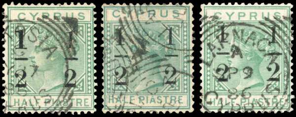 Cyprus SG 29a, c, d 1886 '½' surcharge varieties used