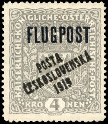 1919 Air Mail 4kr grey optd ‘FLUGPOST’, mint large part o.g. expertising marks on reverse, fine and scarce. SG 93 cat £1200