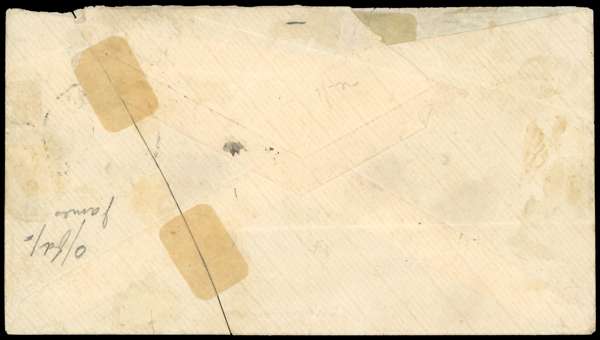 1891 envelope used locally, bearing two examples of the ½d on half 1d red-brown , tied by two strikes of Type F2 CDSs of JY 19 1891. The envelope is creased and mutilated, having been separated between the stamps and rejoined, but the stamps are fine. Philatelic, but the correct rate, a rare and legitimate usage. SG 14