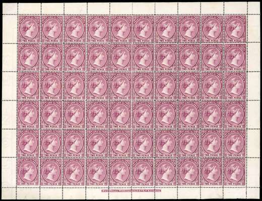 1891-1902 2d reddish purple, complete sheet of 60 with imprint at foot, superb unmounted o.g. SG 26, cat £540++