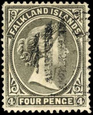 † Falkland Islands SG 31 4d brownish black (watermark reversed) used