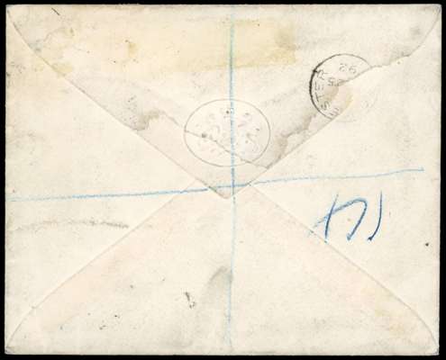 1892 (MY 17) registered cover to Gloucester, franked at 7d (Double 2½d letter rate + 2d registration) by 1891-1902 1d brown and 6d orange-yellow, tied by cork cancels (Barnes 1/92 ‘large block pad’) with fine ‘(Crown)/REGISTERED’ mark at left and type F2 despatch cds below. Red London transit ds on face. Very minor soiling and a few imperfections, nevertheless a fine and attractive cover of considerable rarity. SG 33