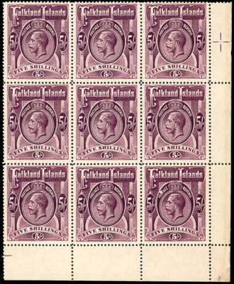 Falkland Islands SG 67b 1912 5s corner block of nine mint